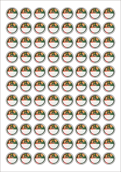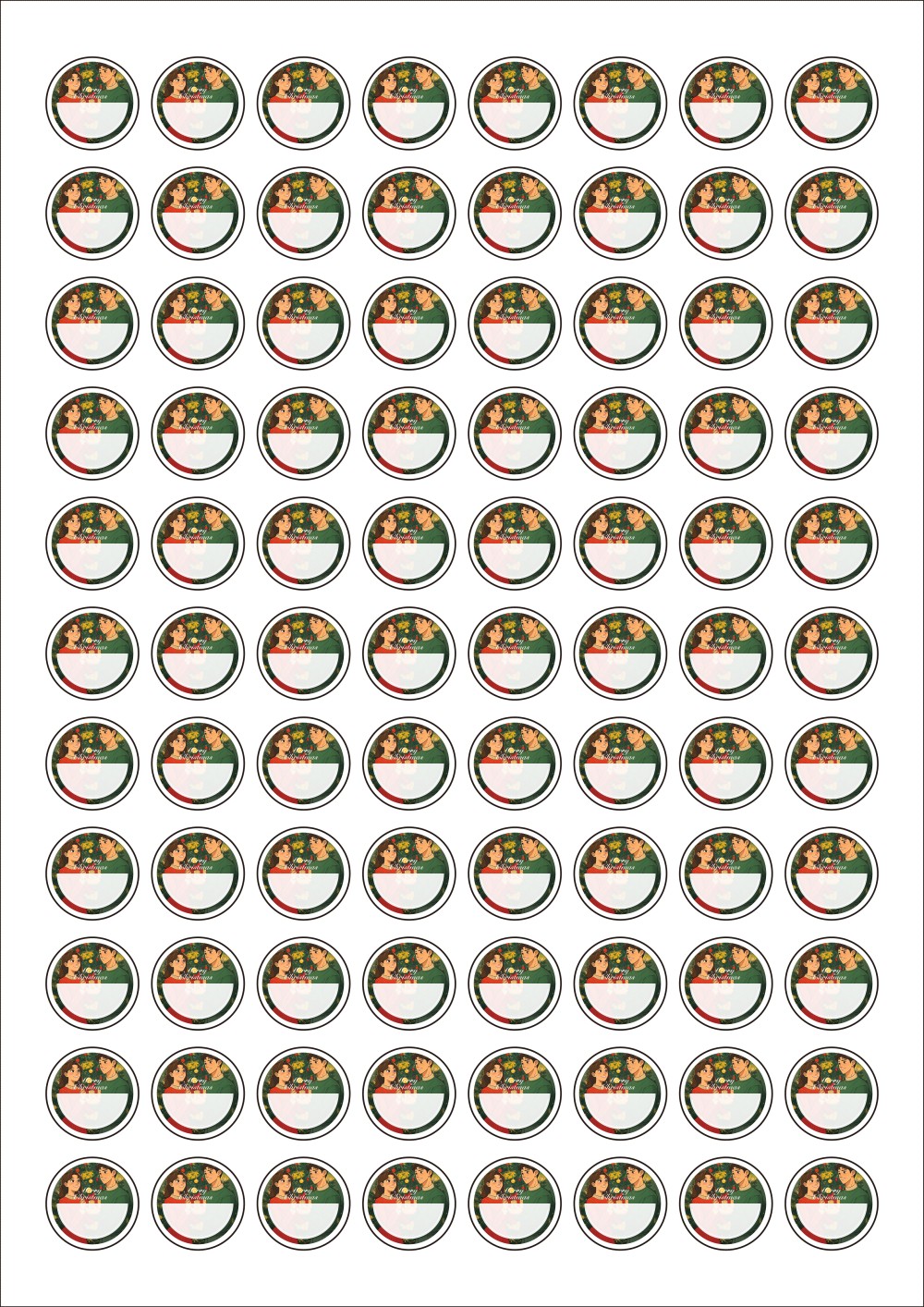 디자인된 A4 라벨지 출력용 라벨스티커, 규격코드: 921, 디자인코드: DA1502(두근두근 선물교환 타임), Φ21 (mm) 원형