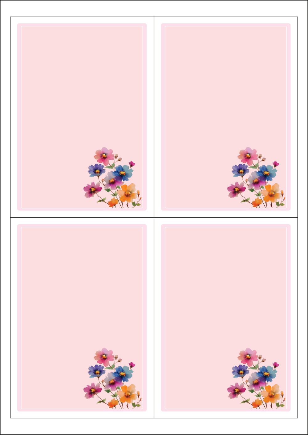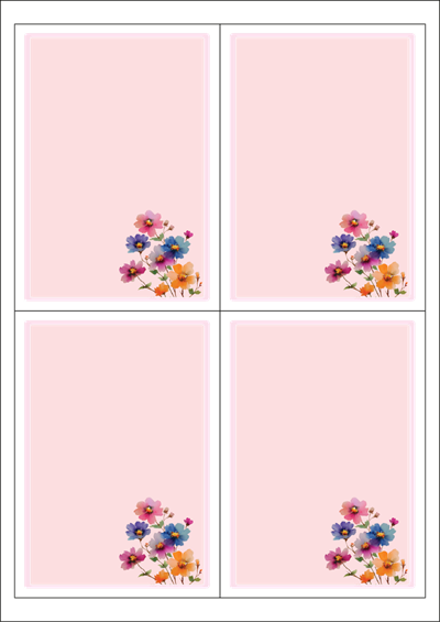 디자인된 A4 라벨지 출력용 라벨스티커, 규격코드: 922, 디자인코드: DA1451(꽃편지), 98 x 137 (mm)