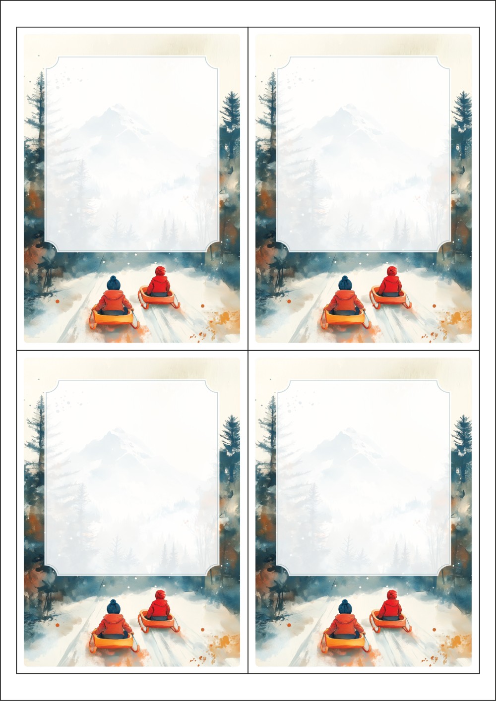 디자인된 A4 라벨지 출력용 라벨스티커, 규격코드: 922, 디자인코드: DA1495(겨울날의 동화, 그리고 즐거운 추억), 98 x 137 (mm)