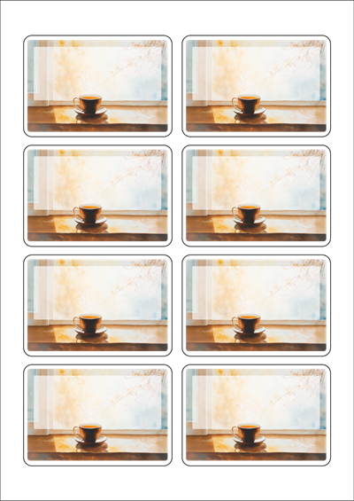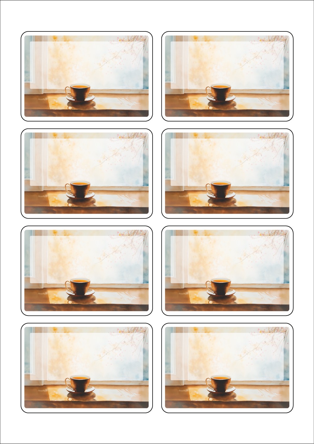 디자인된 A4 라벨지 출력용 라벨스티커, 규격코드: 924, 디자인코드: DA1425(가을날의 카페 창가에서), 88 x 60 (mm)