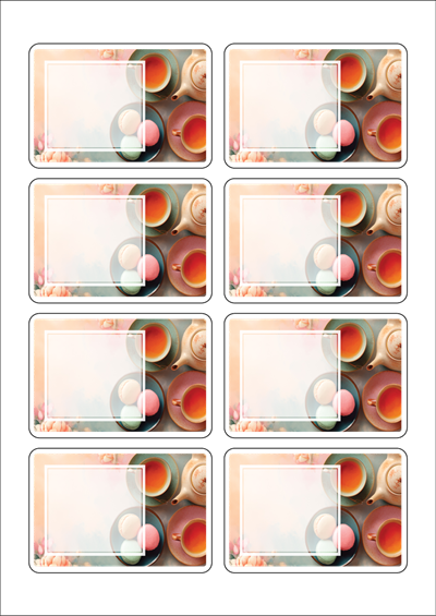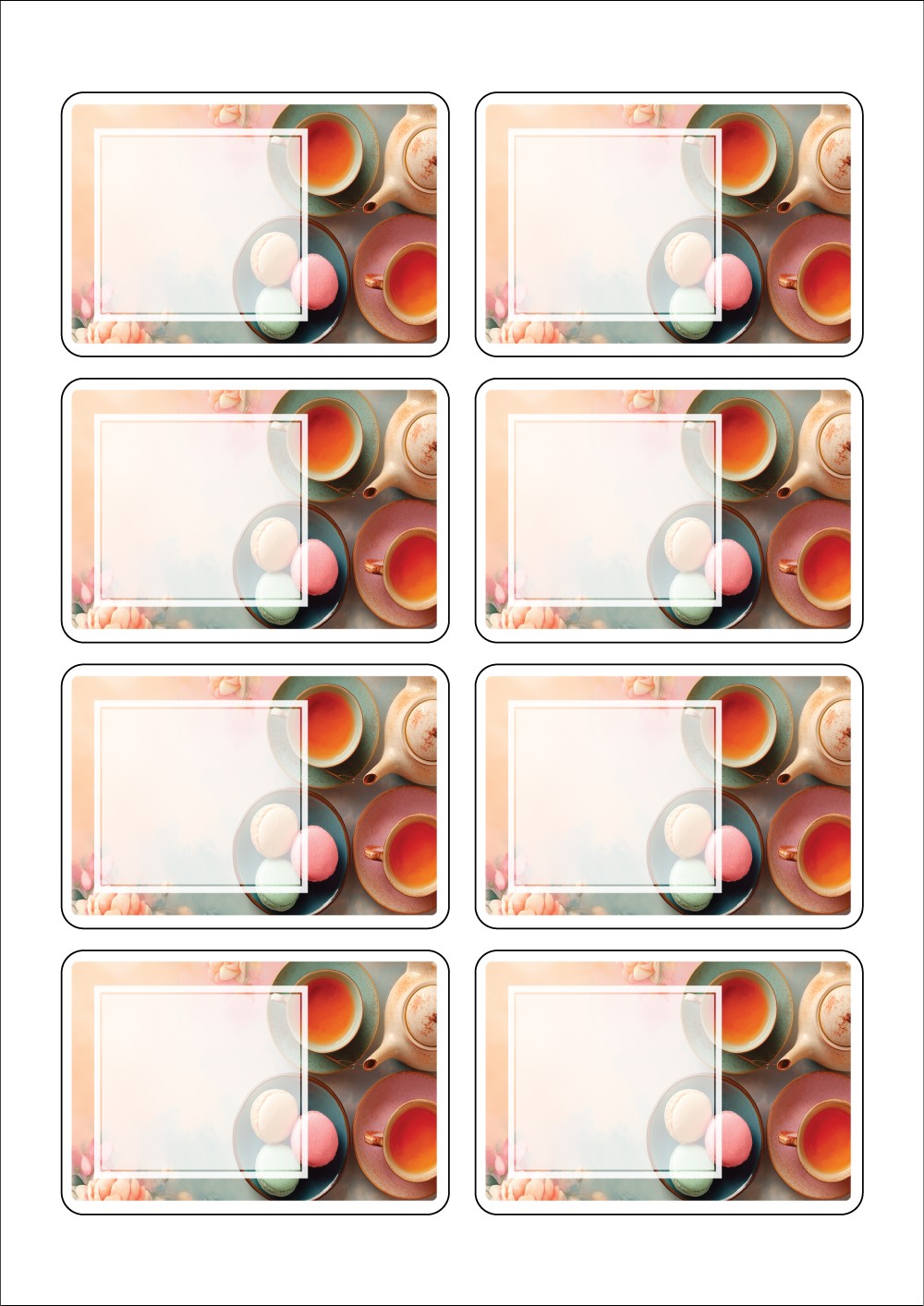 디자인된 A4 라벨지 출력용 라벨스티커, 규격코드: 924, 디자인코드: DA1431(향긋한 아침에), 88 x 60 (mm)