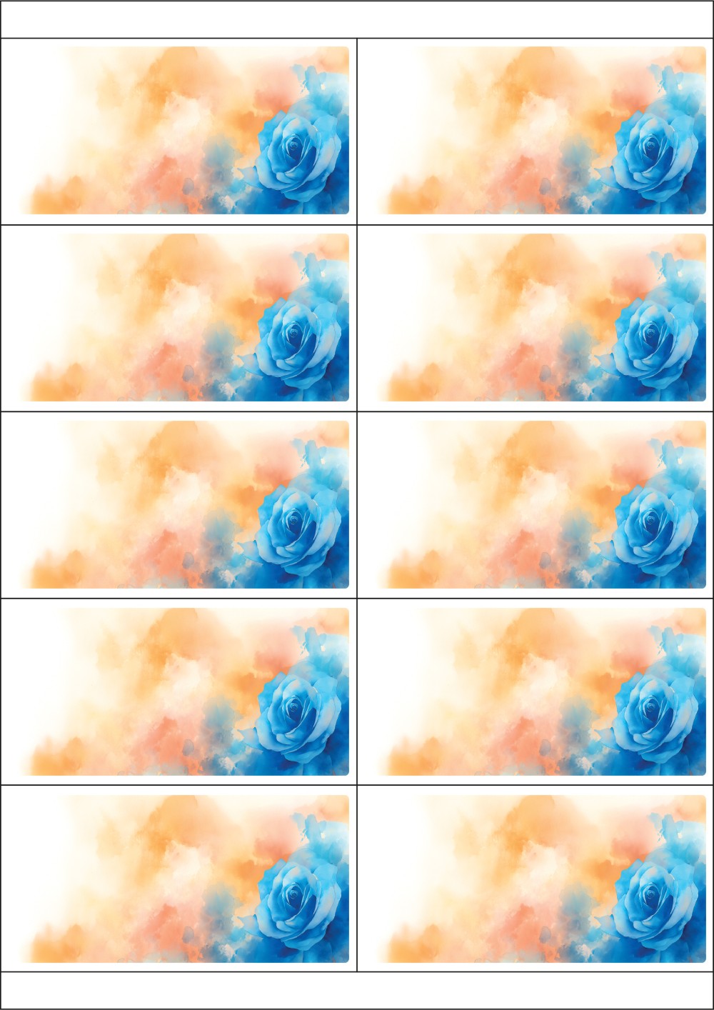 디자인된 A4 라벨지 출력용 라벨스티커, 규격코드: 925, 디자인코드: DA1410(감사의 파란 장미), 105 x 55 (mm)