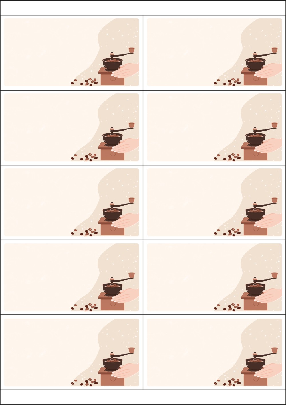 디자인된 A4 라벨지 출력용 라벨스티커, 규격코드: 925, 디자인코드: DA1412(감사의 커피한잔), 105 x 55 (mm)