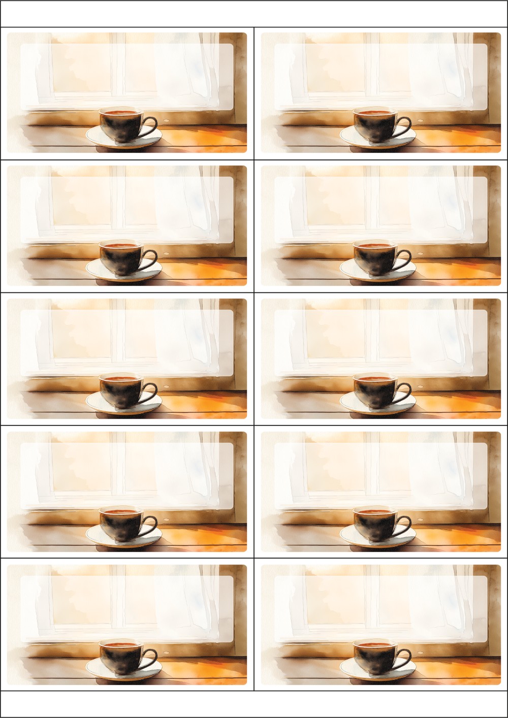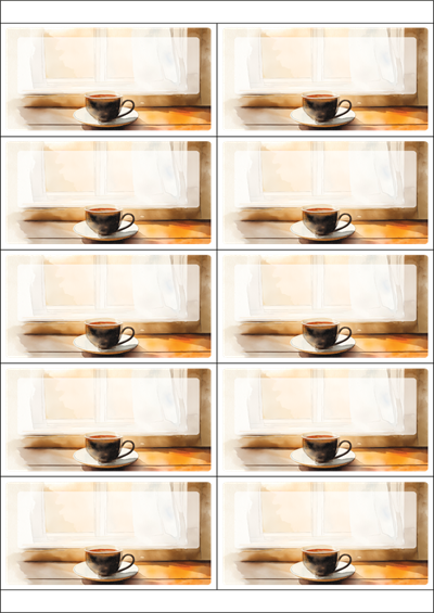 디자인된 A4 라벨지 출력용 라벨스티커, 규격코드: 925, 디자인코드: DA1424(따뜻한 차 한잔 하세요), 105 x 55 (mm)