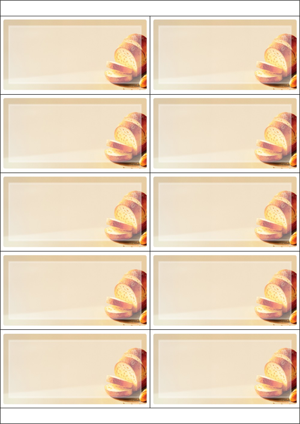 디자인된 A4 라벨지 출력용 라벨스티커, 규격코드: 925, 디자인코드: DA1450(맛있는 베이커리), 105 x 55 (mm)
