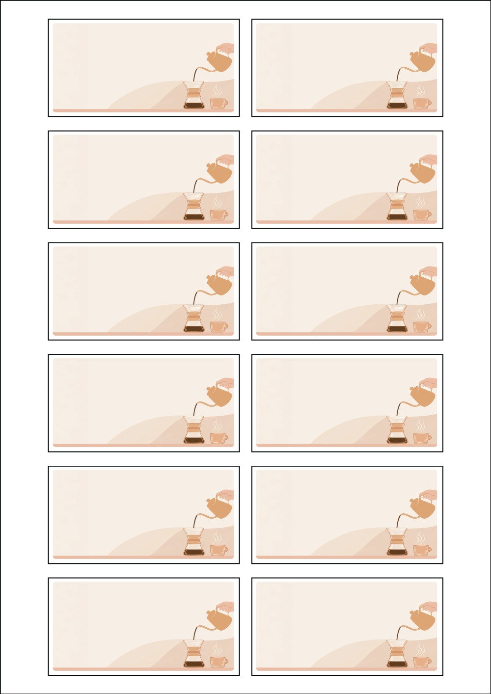 디자인된 A4 라벨지 출력용 라벨스티커, 규격코드: 926, 디자인코드: DA1413(커피와 함께 힐링타임), 82 x 42 (mm)