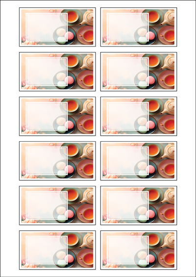 디자인된 A4 라벨지 출력용 라벨스티커, 규격코드: 926, 디자인코드: DA1431(향긋한 아침에), 82 x 42 (mm)