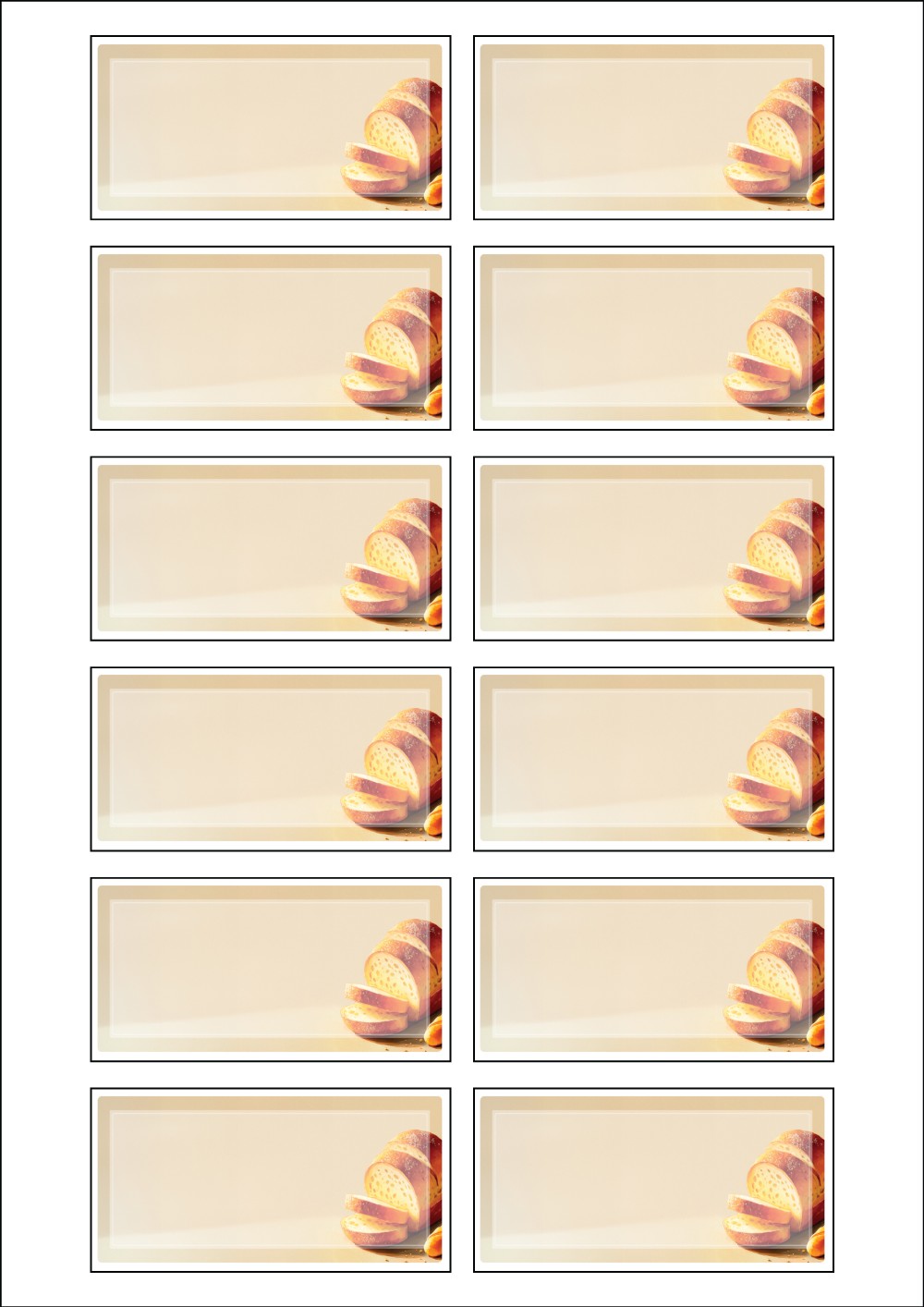 디자인된 A4 라벨지 출력용 라벨스티커, 규격코드: 926, 디자인코드: DA1450(맛있는 베이커리), 82 x 42 (mm)
