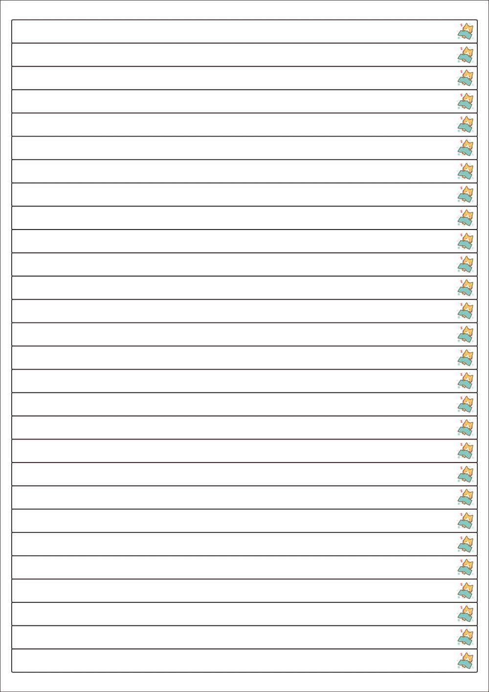 디자인된 A4 라벨지 출력용 라벨스티커, 규격코드: 928, 디자인코드: DT001(이제 쉰다냥~~), 200 x 10 (mm)