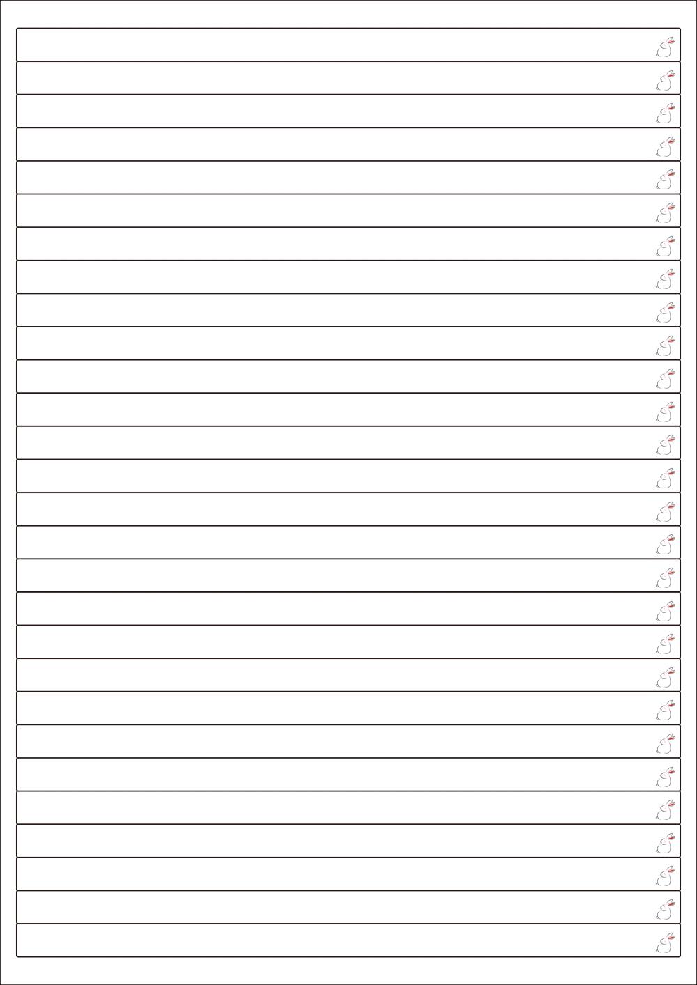 디자인된 A4 라벨지 출력용 라벨스티커, 규격코드: 928, 디자인코드: DV026(하이 ~ 토끼씨.), 200 x 10 (mm)