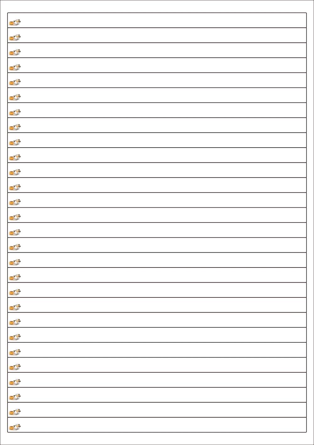 디자인된 A4 라벨지 출력용 라벨스티커, 규격코드: 928, 디자인코드: DX008(커피왔냥~), 200 x 10 (mm)