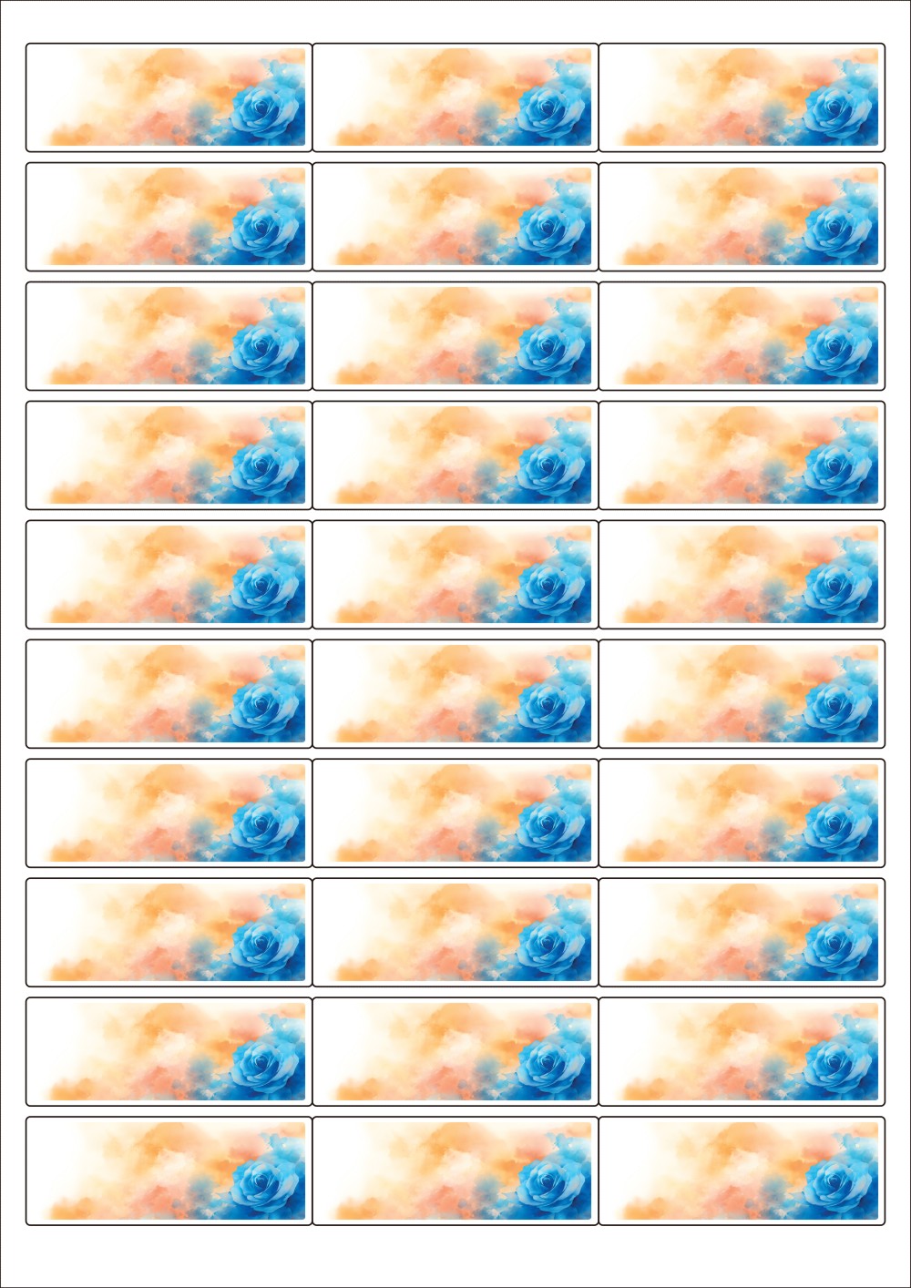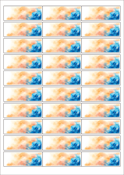 디자인된 A4 라벨지 출력용 라벨스티커, 규격코드: 930, 디자인코드: DA1410(감사의 파란 장미), 66 x 25 (mm)