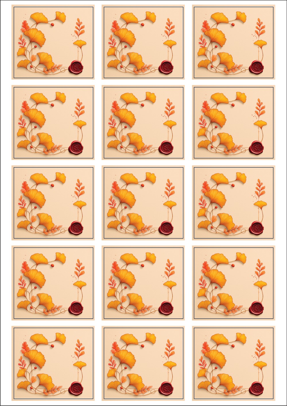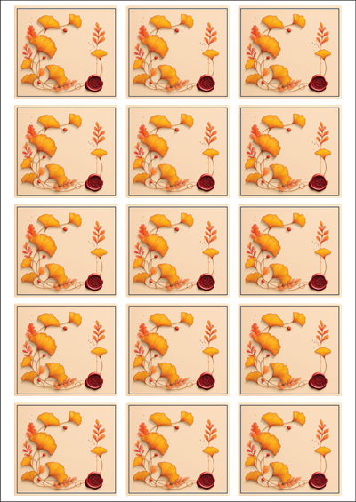 디자인된 A4 라벨지 출력용 라벨스티커, 규격코드: 935, 디자인코드: DA1437(은행잎 메모), 58 x 52 (mm)