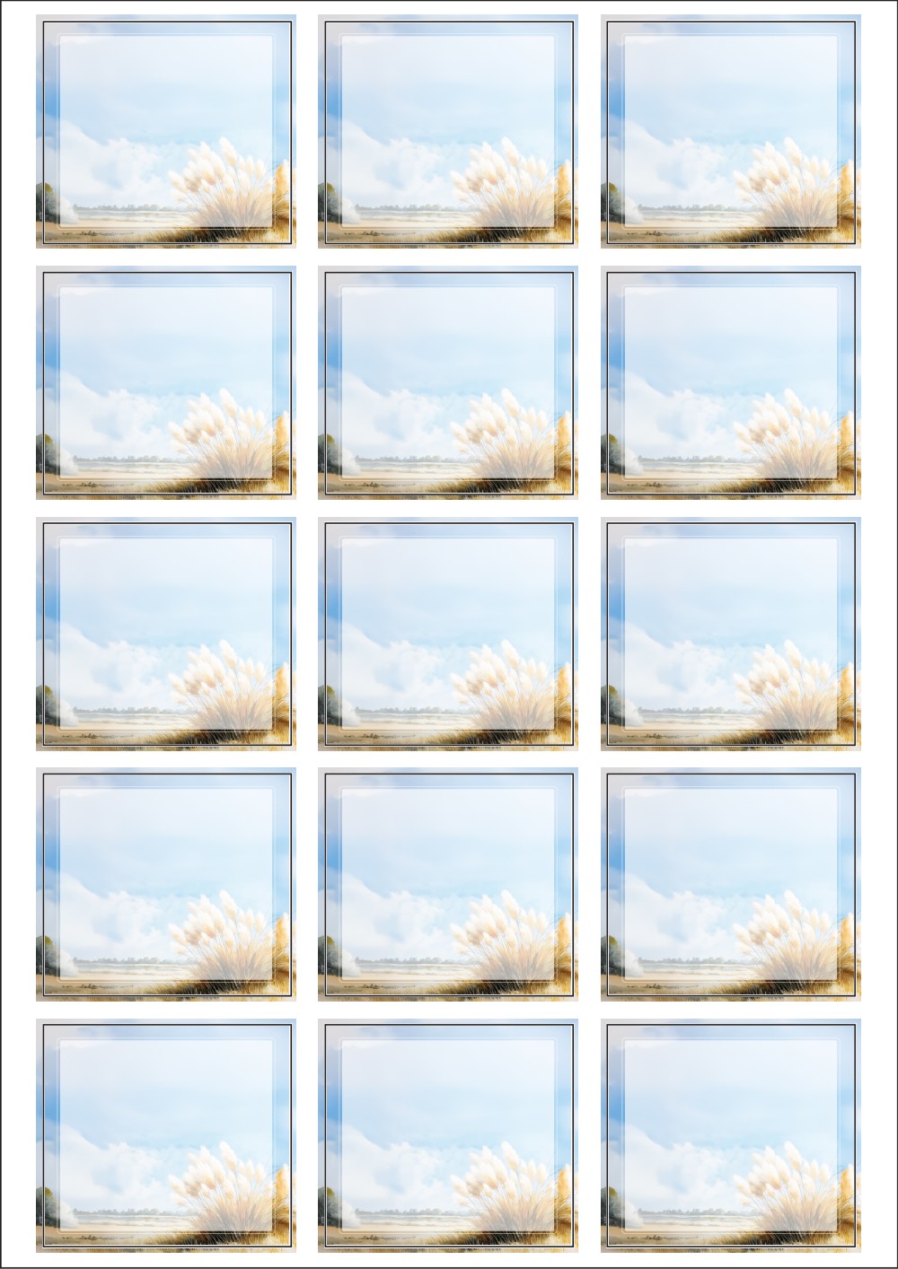 디자인된 A4 라벨지 출력용 라벨스티커, 규격코드: 935, 디자인코드: DA1448(가을 여행 1), 58 x 52 (mm)