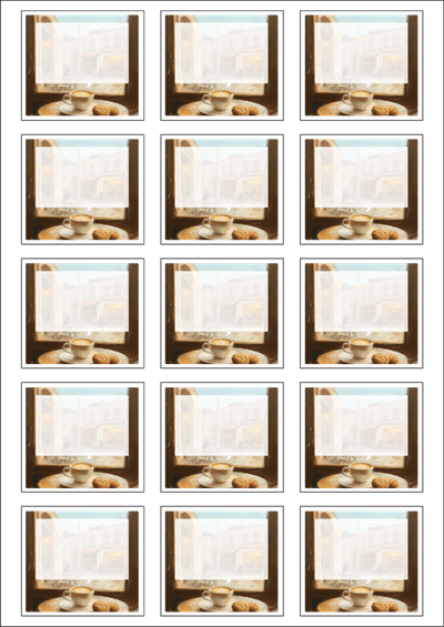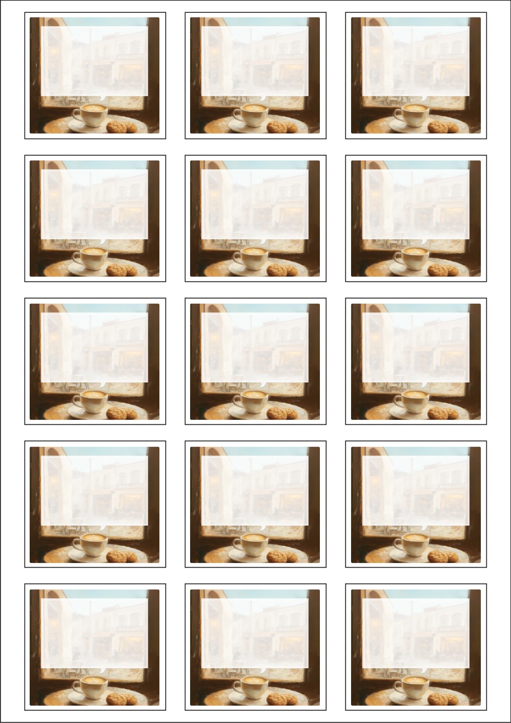디자인된 A4 라벨지 출력용 라벨스티커, 규격코드: 935, 디자인코드: DA1479(레트로 감성 카페에서), 58 x 52 (mm)