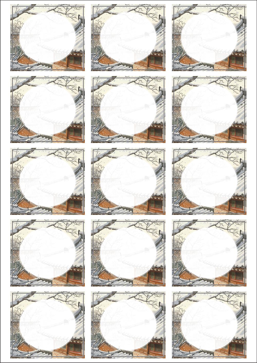 디자인된 A4 라벨지 출력용 라벨스티커, 규격코드: 935, 디자인코드: DA1538(새해 인사), 58 x 52 (mm)
