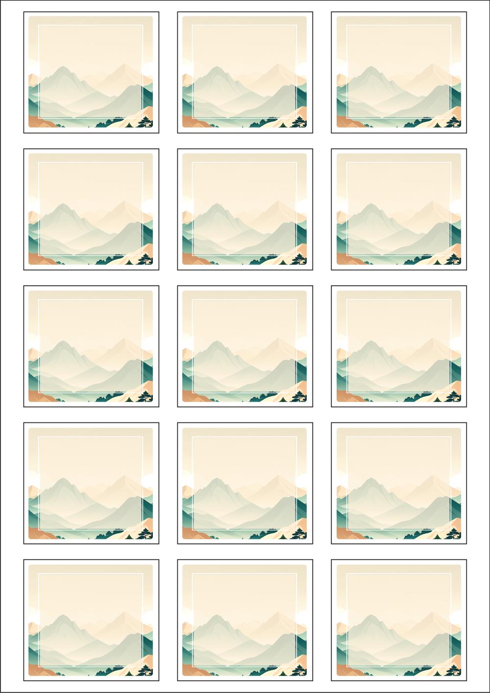 디자인된 A4 라벨지 출력용 라벨스티커, 규격코드: 935, 디자인코드: DA1565(자연의 물결1), 58 x 52 (mm)