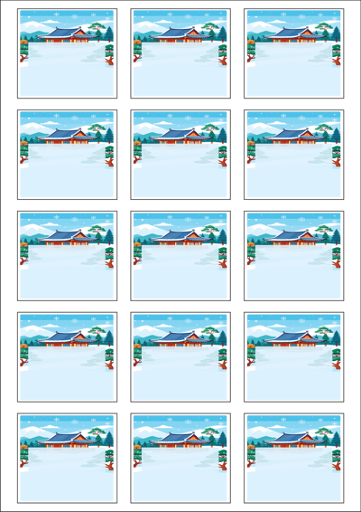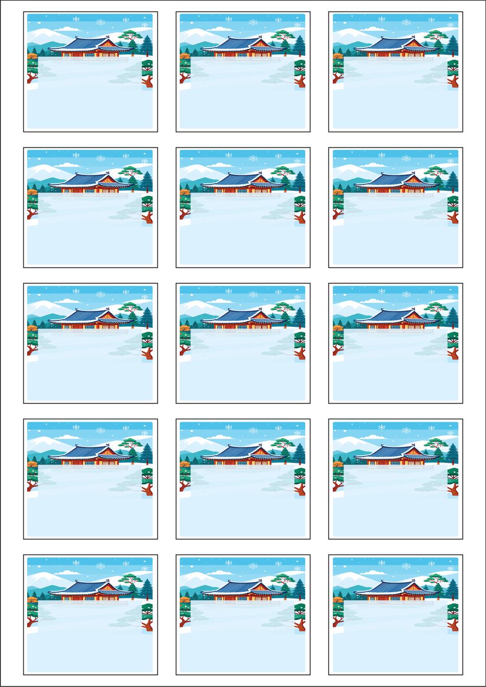 디자인된 A4 라벨지 출력용 라벨스티커, 규격코드: 935, 디자인코드: DA1567(설날의 아침1), 58 x 52 (mm)