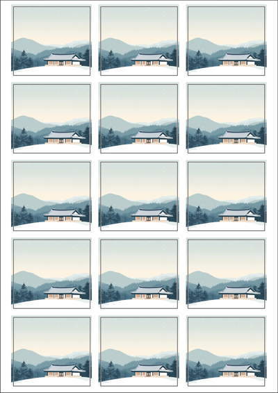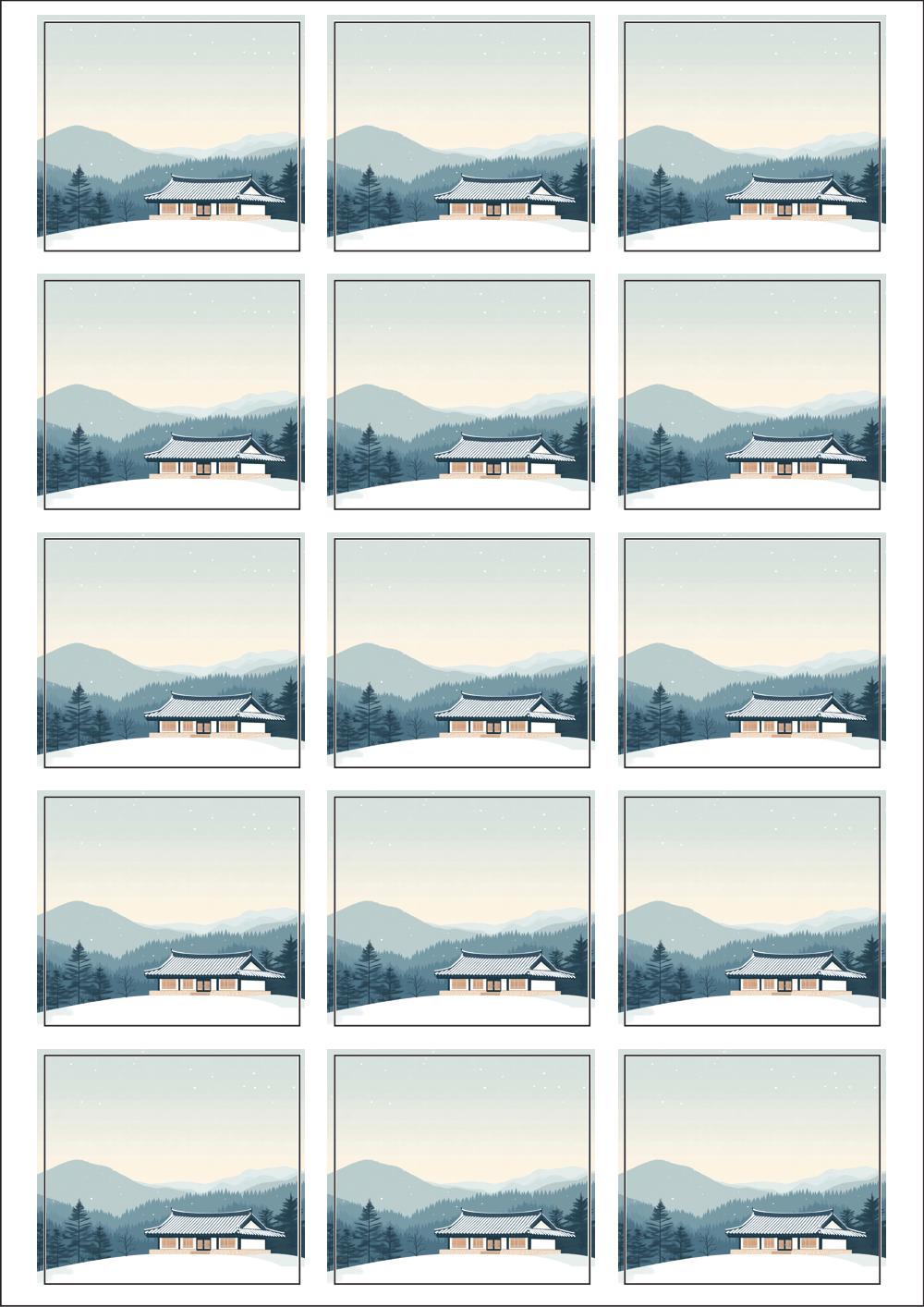 디자인된 A4 라벨지 출력용 라벨스티커, 규격코드: 935, 디자인코드: DA1576(고요한 마음과 다정한 인사), 58 x 52 (mm)