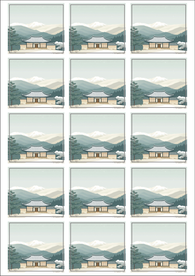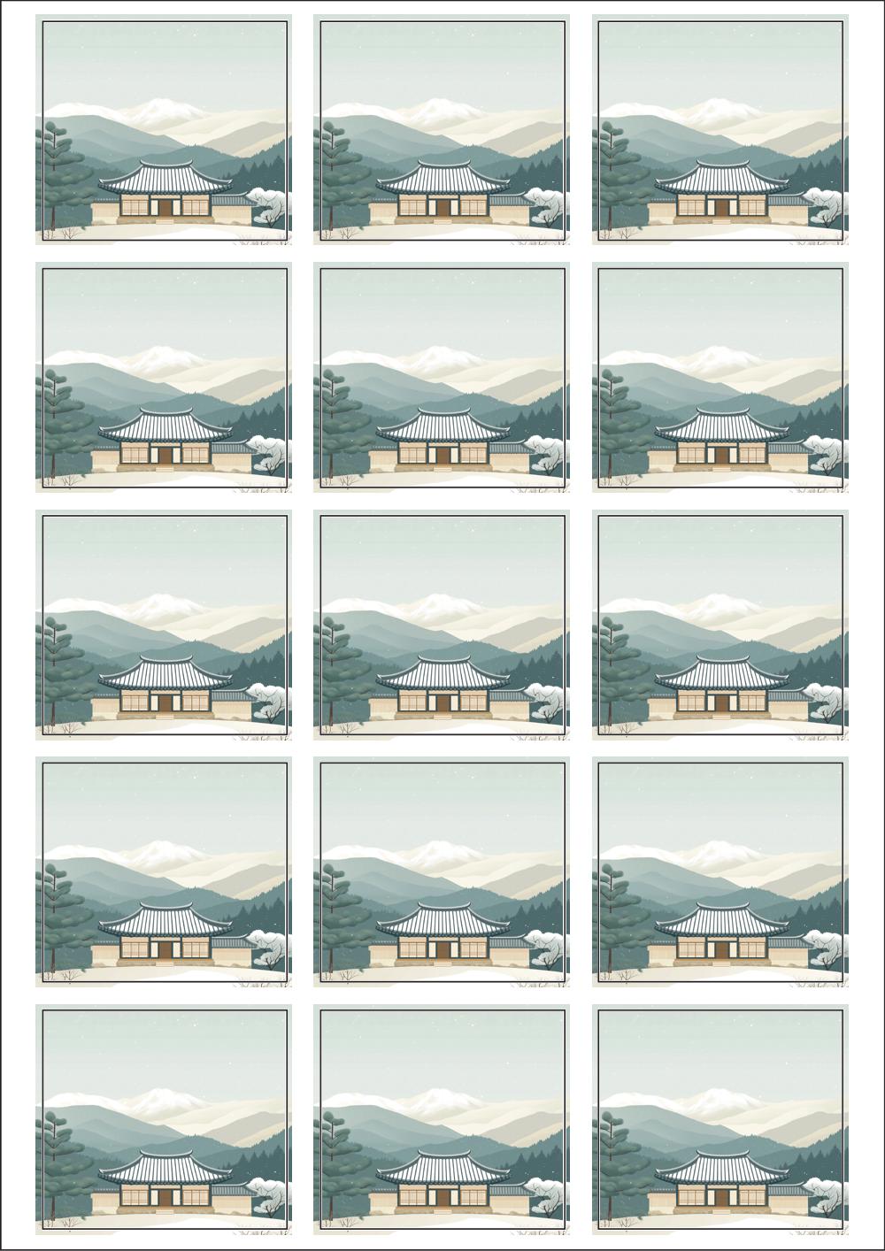디자인된 A4 라벨지 출력용 라벨스티커, 규격코드: 935, 디자인코드: DA1578(고요한 설날의 아침), 58 x 52 (mm)