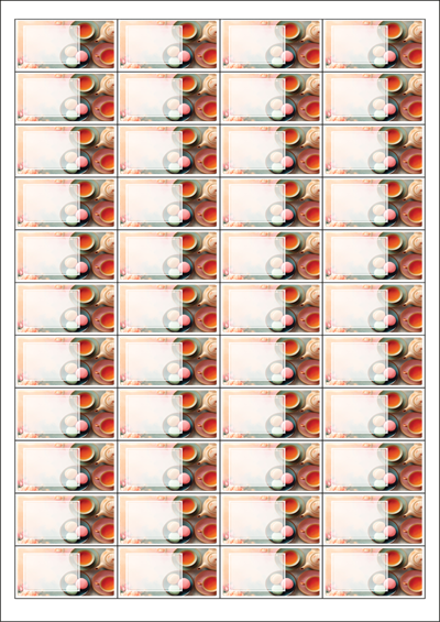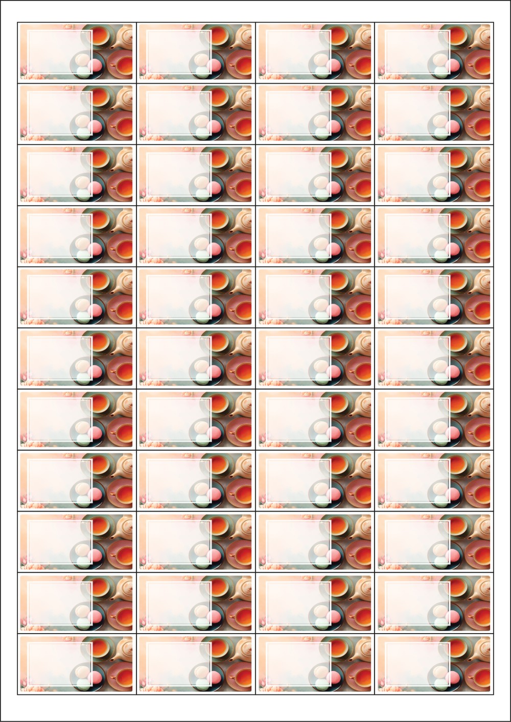 디자인된 A4 라벨지 출력용 라벨스티커, 규격코드: 941, 디자인코드: DA1431(향긋한 아침에), 49 x 25.18 (mm)