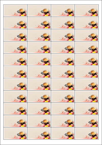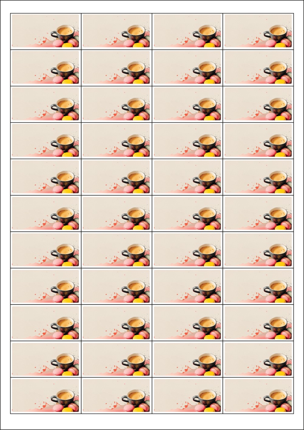 디자인된 A4 라벨지 출력용 라벨스티커, 규격코드: 941, 디자인코드: DA1445(차와 함께하는 즐거운 힐링타임), 49 x 25.18 (mm)