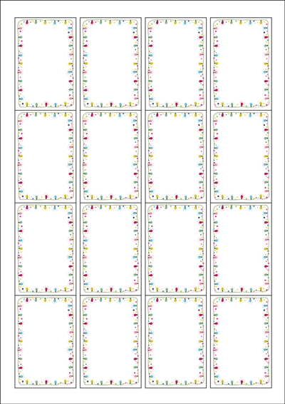 디자인된 A4 라벨지 출력용 라벨스티커, 규격코드: 945, 디자인코드: DA062(자! 파티를 시작해요), 45 x 68 (mm)