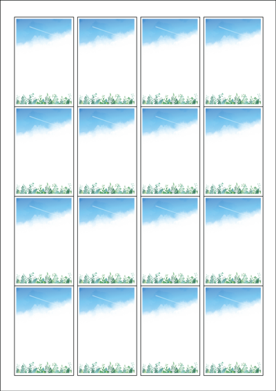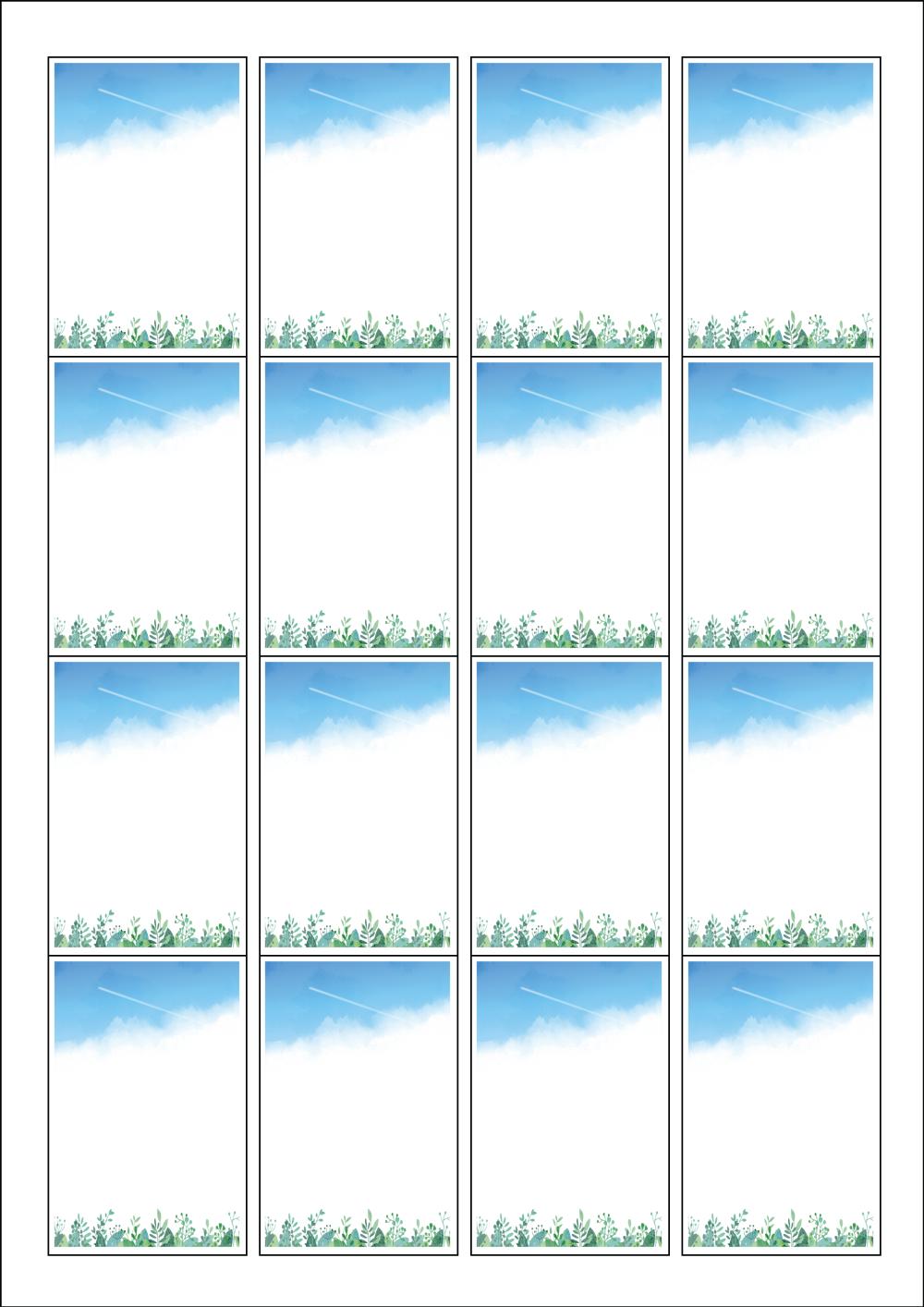 디자인된 A4 라벨지 출력용 라벨스티커, 규격코드: 945, 디자인코드: DA229(푸른하늘이 있는 풍경), 45 x 68 (mm)