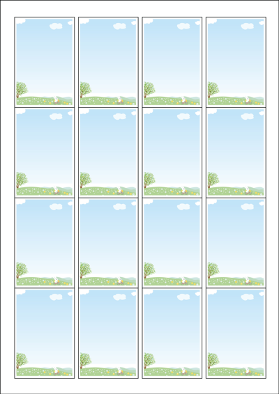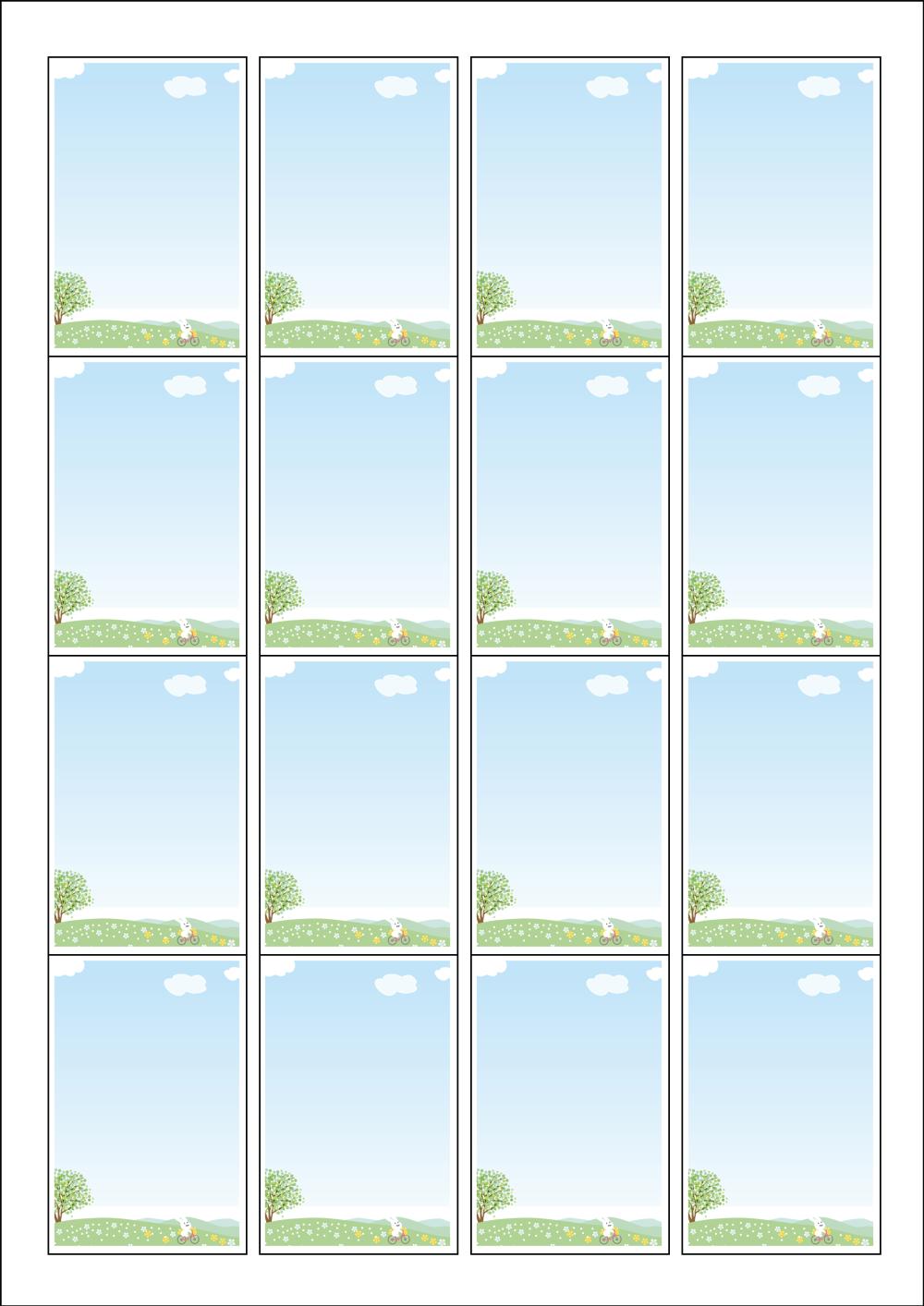 디자인된 A4 라벨지 출력용 라벨스티커, 규격코드: 945, 디자인코드: DA488(토끼의 자전거), 45 x 68 (mm)