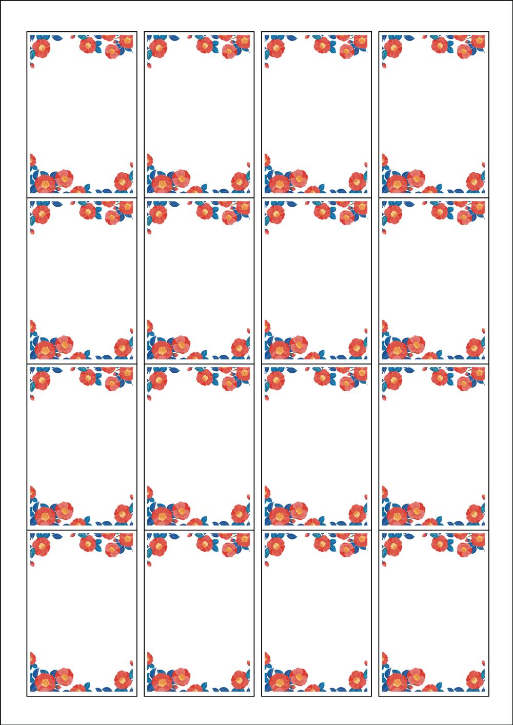 디자인된 A4 라벨지 출력용 라벨스티커, 규격코드: 945, 디자인코드: DA780(동백꽃 꽃말처럼 사랑하라), 45 x 68 (mm)