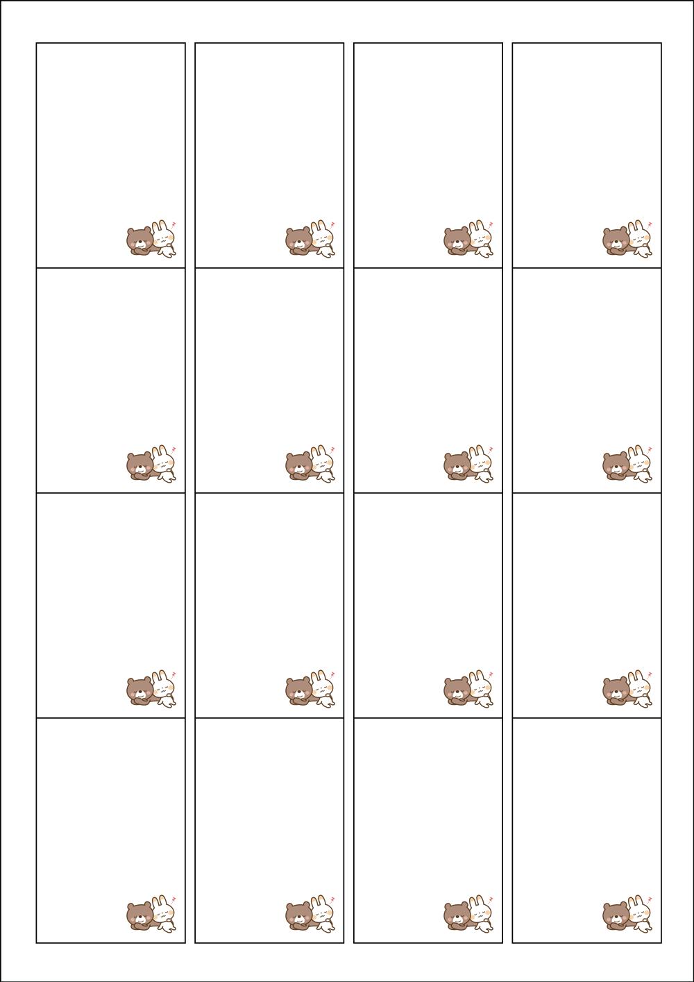 디자인된 A4 라벨지 출력용 라벨스티커, 규격코드: 945, 디자인코드: DV072(포근한 곰위에 낮잠 토끼), 45 x 68 (mm)