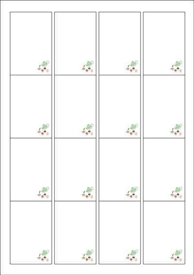 디자인된 A4 라벨지 출력용 라벨스티커, 규격코드: 945, 디자인코드: DV073(오후에 티타임), 45 x 68 (mm)