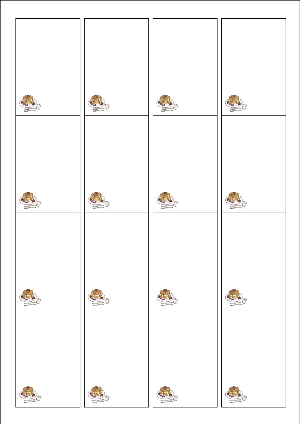 디자인된 A4 라벨지 출력용 라벨스티커, 규격코드: 945, 디자인코드: DX059(팬케익에 시럽 듬뿍!), 45 x 68 (mm)