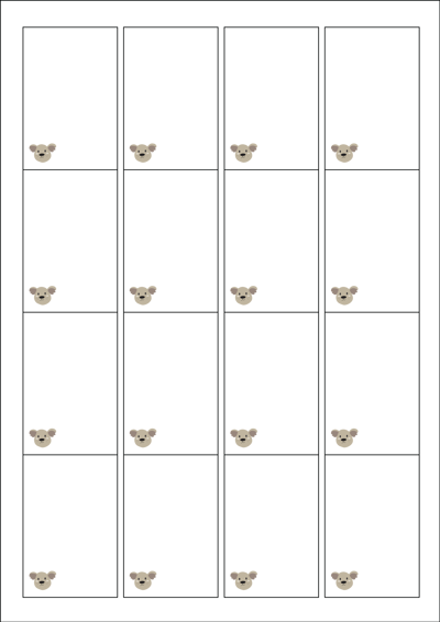 디자인된 A4 라벨지 출력용 라벨스티커, 규격코드: 945, 디자인코드: DX111(알고 있니? 코알라~), 45 x 68 (mm)