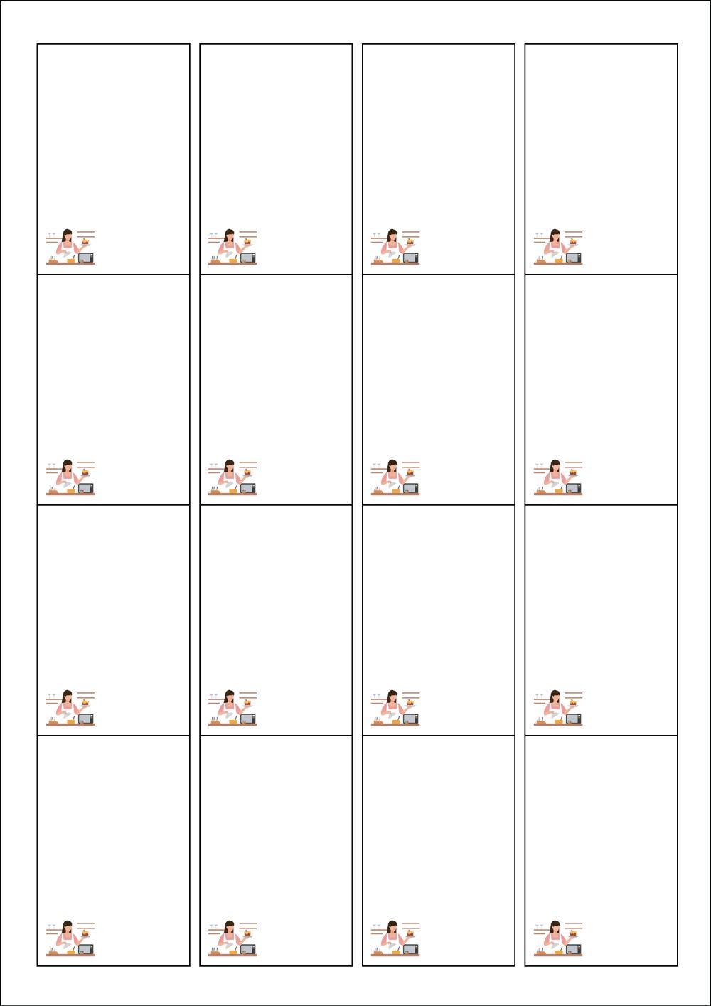 디자인된 A4 라벨지 출력용 라벨스티커, 규격코드: 945, 디자인코드: DX134(오늘의 요리는?), 45 x 68 (mm)