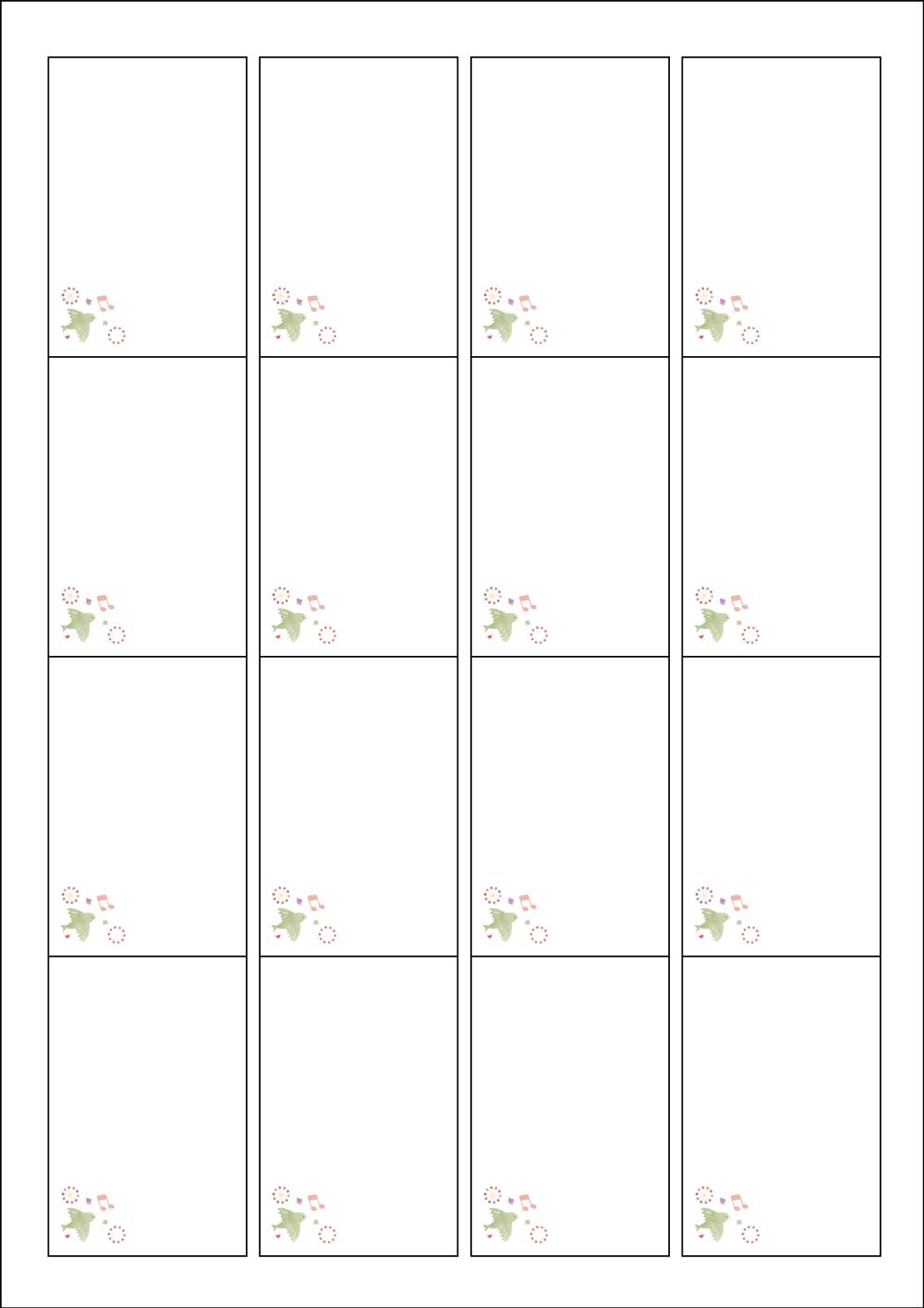 디자인된 A4 라벨지 출력용 라벨스티커, 규격코드: 945, 디자인코드: DX154(축제와 새의 노래), 45 x 68 (mm)