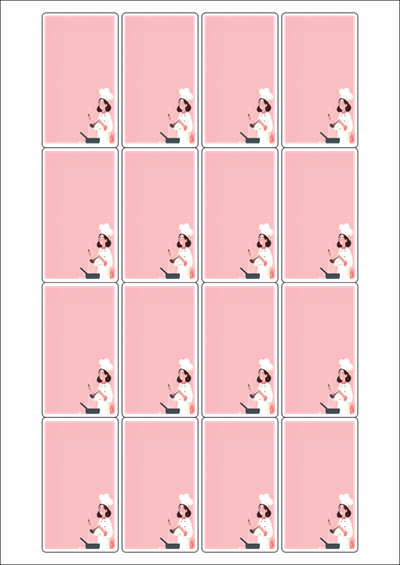 디자인된 A4 라벨지 출력용 라벨스티커, 규격코드: 947, 디자인코드: DA1434(요리교실 오픈했어요), 40 x 71 (mm)