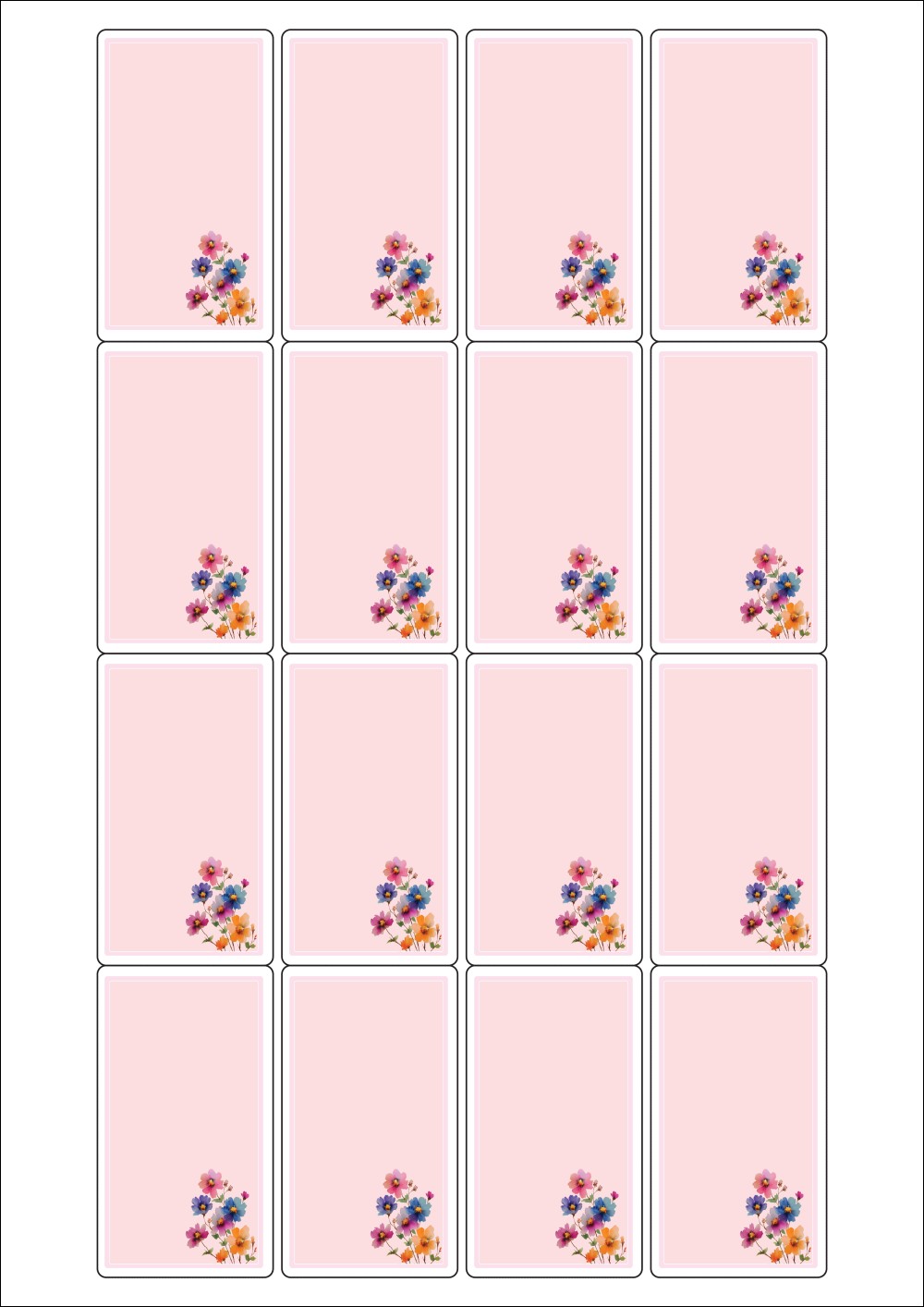 디자인된 A4 라벨지 출력용 라벨스티커, 규격코드: 947, 디자인코드: DA1451(꽃편지), 40 x 71 (mm)