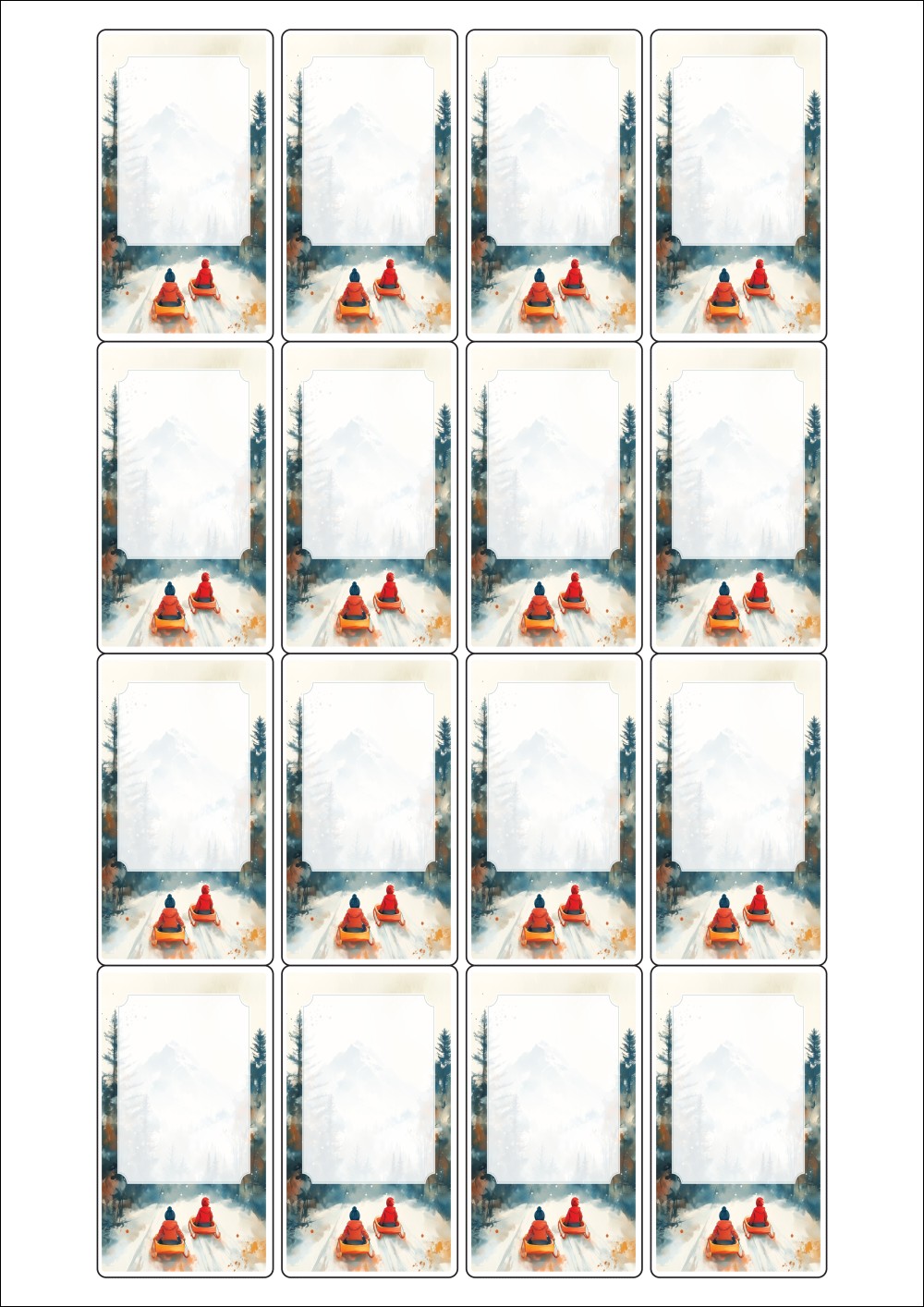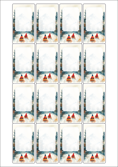 디자인된 A4 라벨지 출력용 라벨스티커, 규격코드: 947, 디자인코드: DA1495(겨울날의 동화, 그리고 즐거운 추억), 40 x 71 (mm)