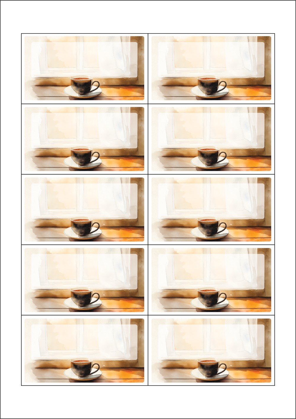 디자인된 A4 라벨지 출력용 라벨스티커, 규격코드: 952, 디자인코드: DA1424(따뜻한 차 한잔 하세요), 90 x 50 (mm)