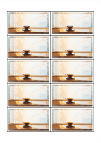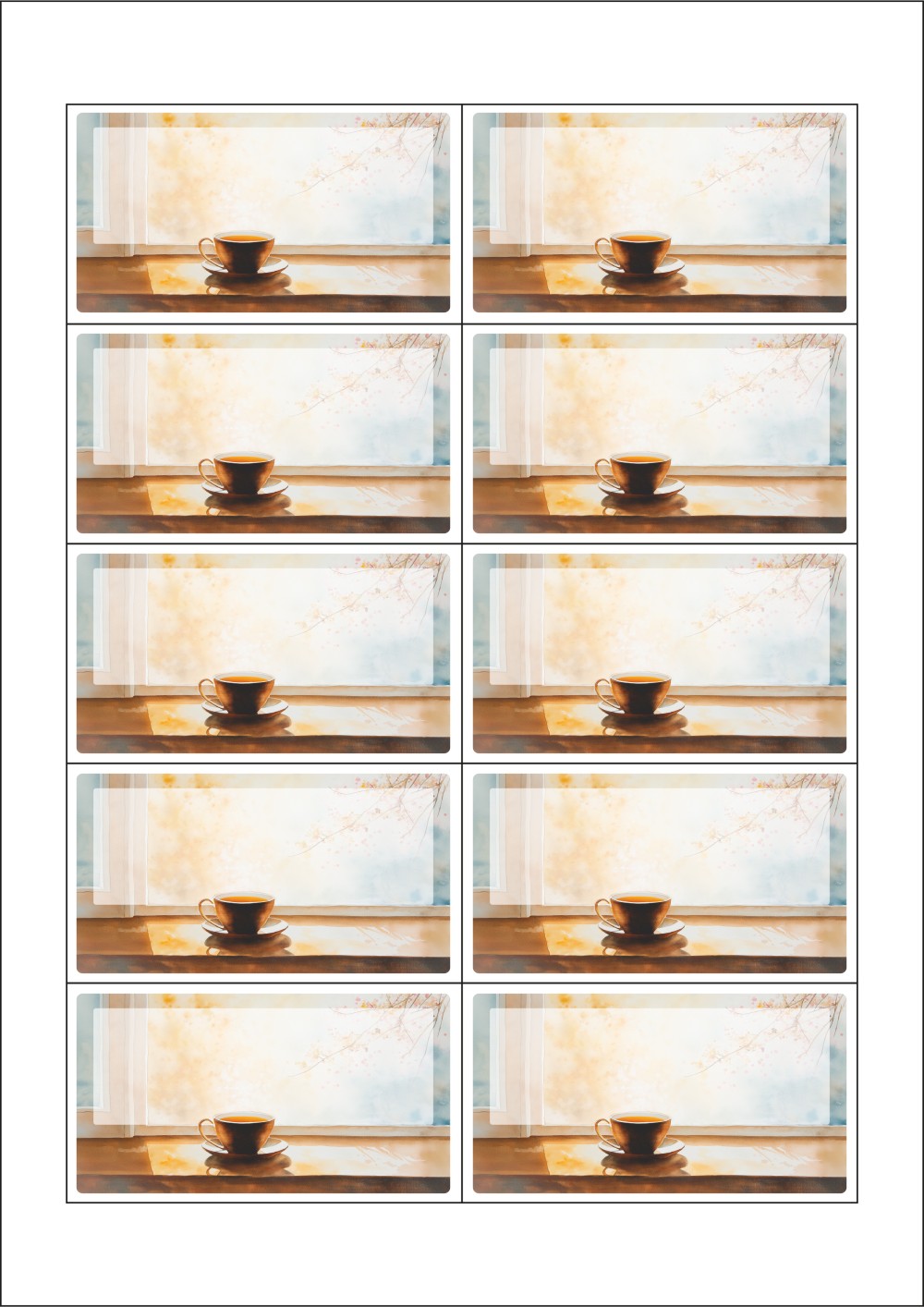 디자인된 A4 라벨지 출력용 라벨스티커, 규격코드: 952, 디자인코드: DA1425(가을날의 카페 창가에서), 90 x 50 (mm)