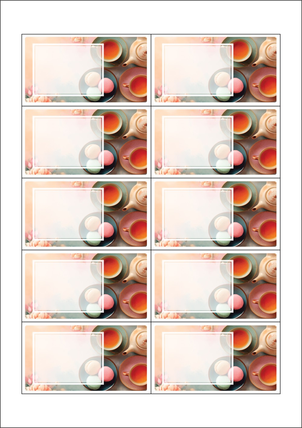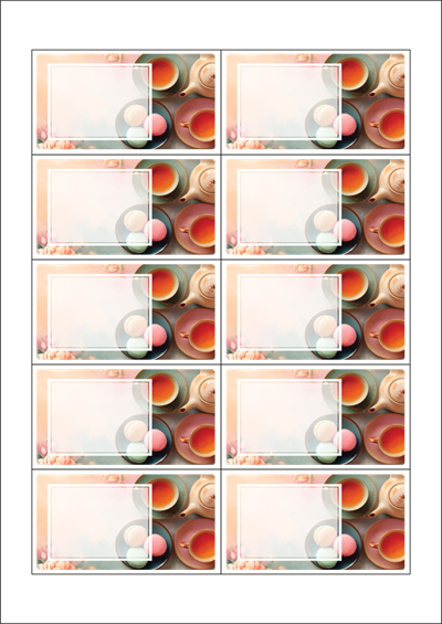 디자인된 A4 라벨지 출력용 라벨스티커, 규격코드: 952, 디자인코드: DA1431(향긋한 아침에), 90 x 50 (mm)