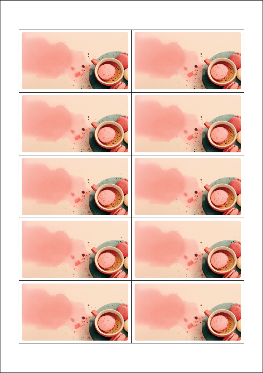 디자인된 A4 라벨지 출력용 라벨스티커, 규격코드: 952, 디자인코드: DA1444(마카롱 휴식타임), 90 x 50 (mm)
