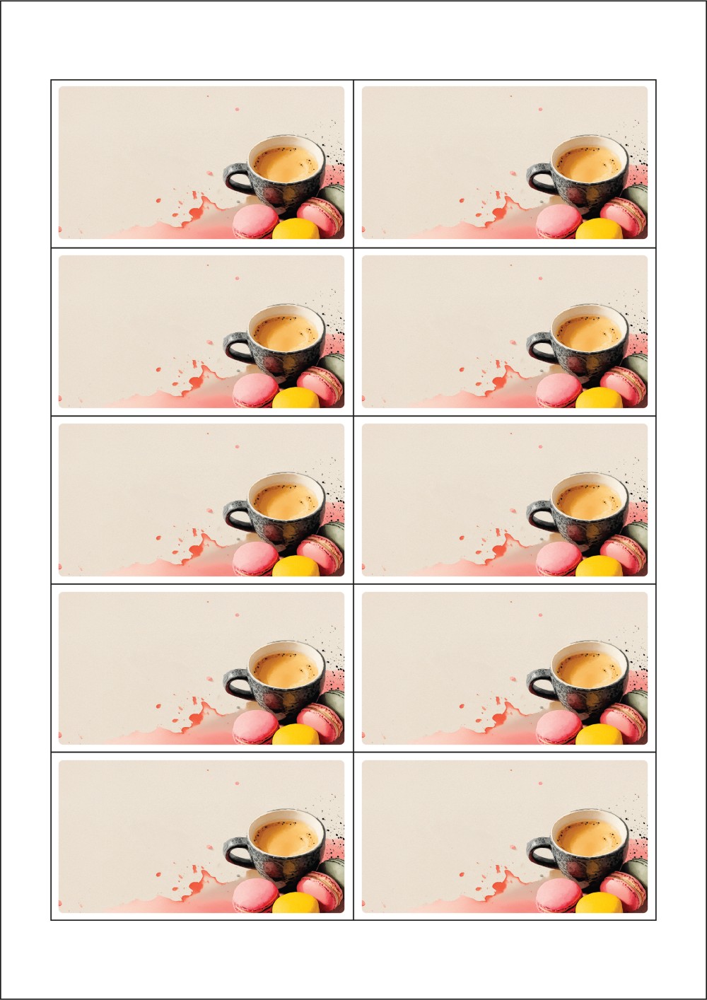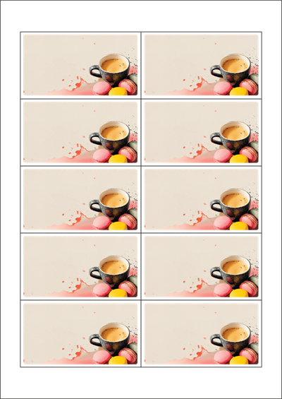 디자인된 A4 라벨지 출력용 라벨스티커, 규격코드: 952, 디자인코드: DA1445(차와 함께하는 즐거운 힐링타임), 90 x 50 (mm)