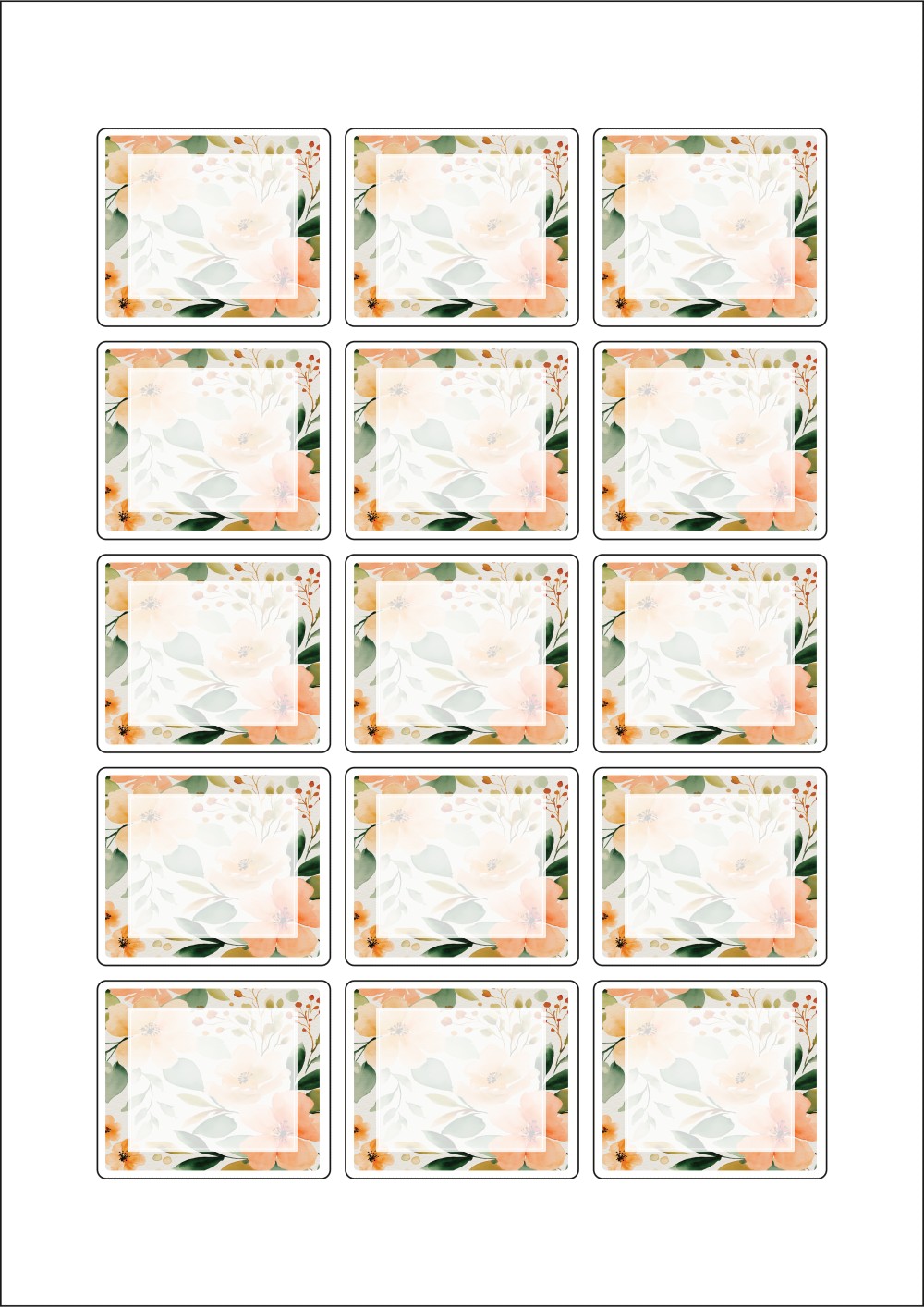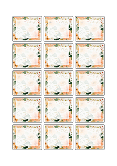디자인된 A4 라벨지 출력용 라벨스티커, 규격코드: 953, 디자인코드: DA1420(꽃무늬 포장지1), 53 x 45 (mm)