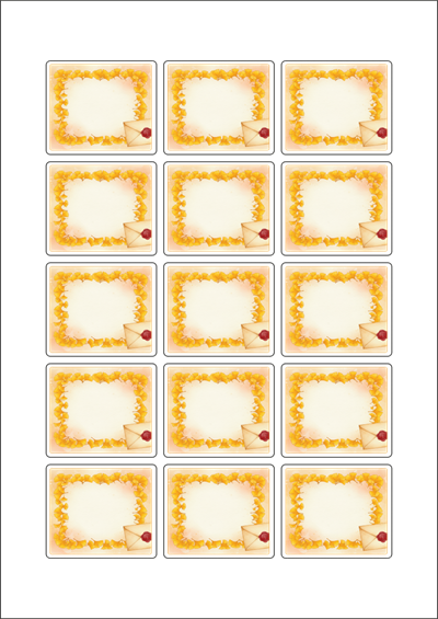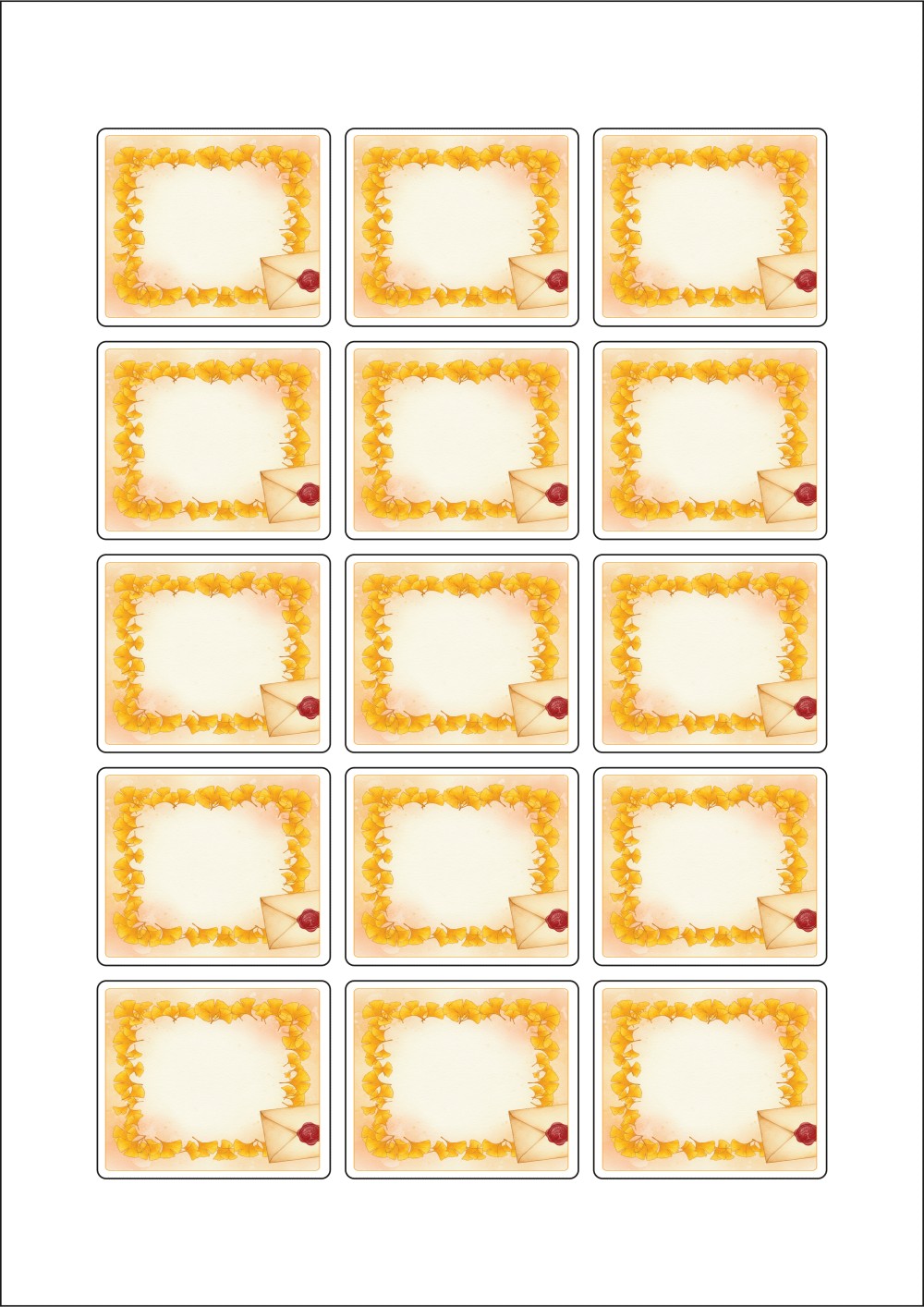 디자인된 A4 라벨지 출력용 라벨스티커, 규격코드: 953, 디자인코드: DA1426(은행잎 편지), 53 x 45 (mm)
