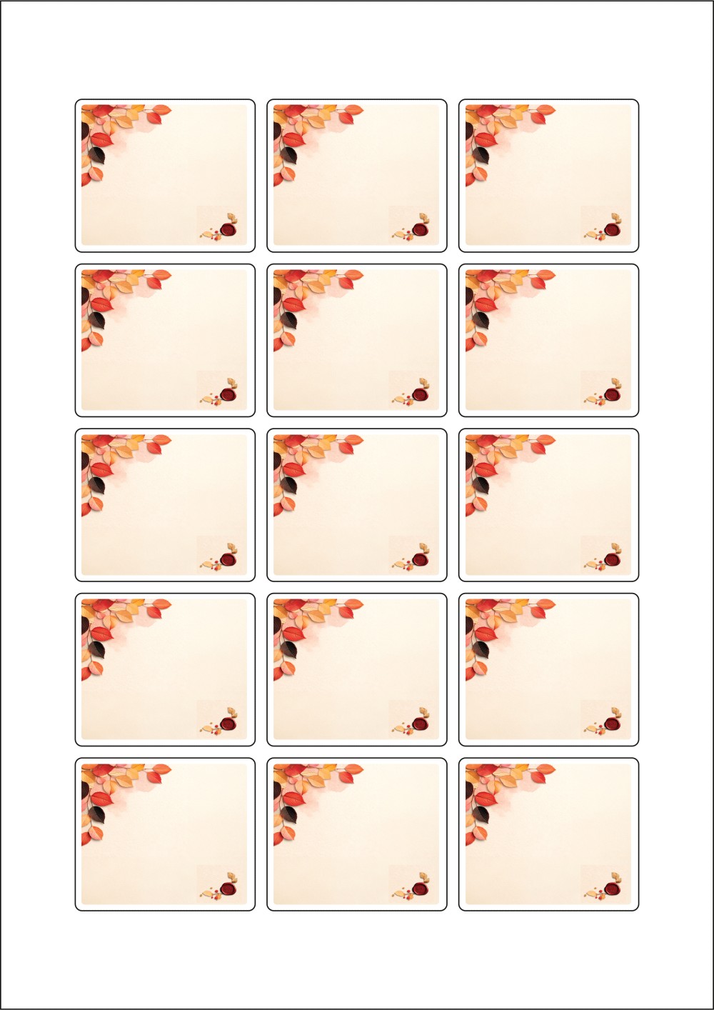 디자인된 A4 라벨지 출력용 라벨스티커, 규격코드: 953, 디자인코드: DA1428(가을날의 메세지1), 53 x 45 (mm)