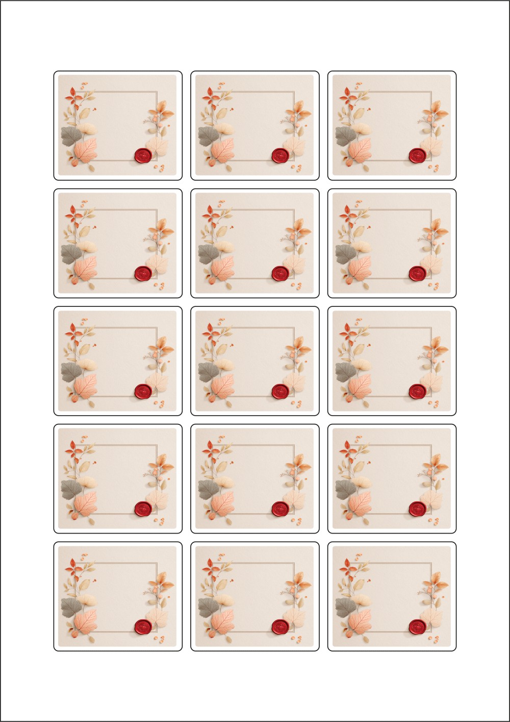 디자인된 A4 라벨지 출력용 라벨스티커, 규격코드: 953, 디자인코드: DA1429(가을날의 메세지2), 53 x 45 (mm)