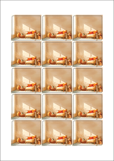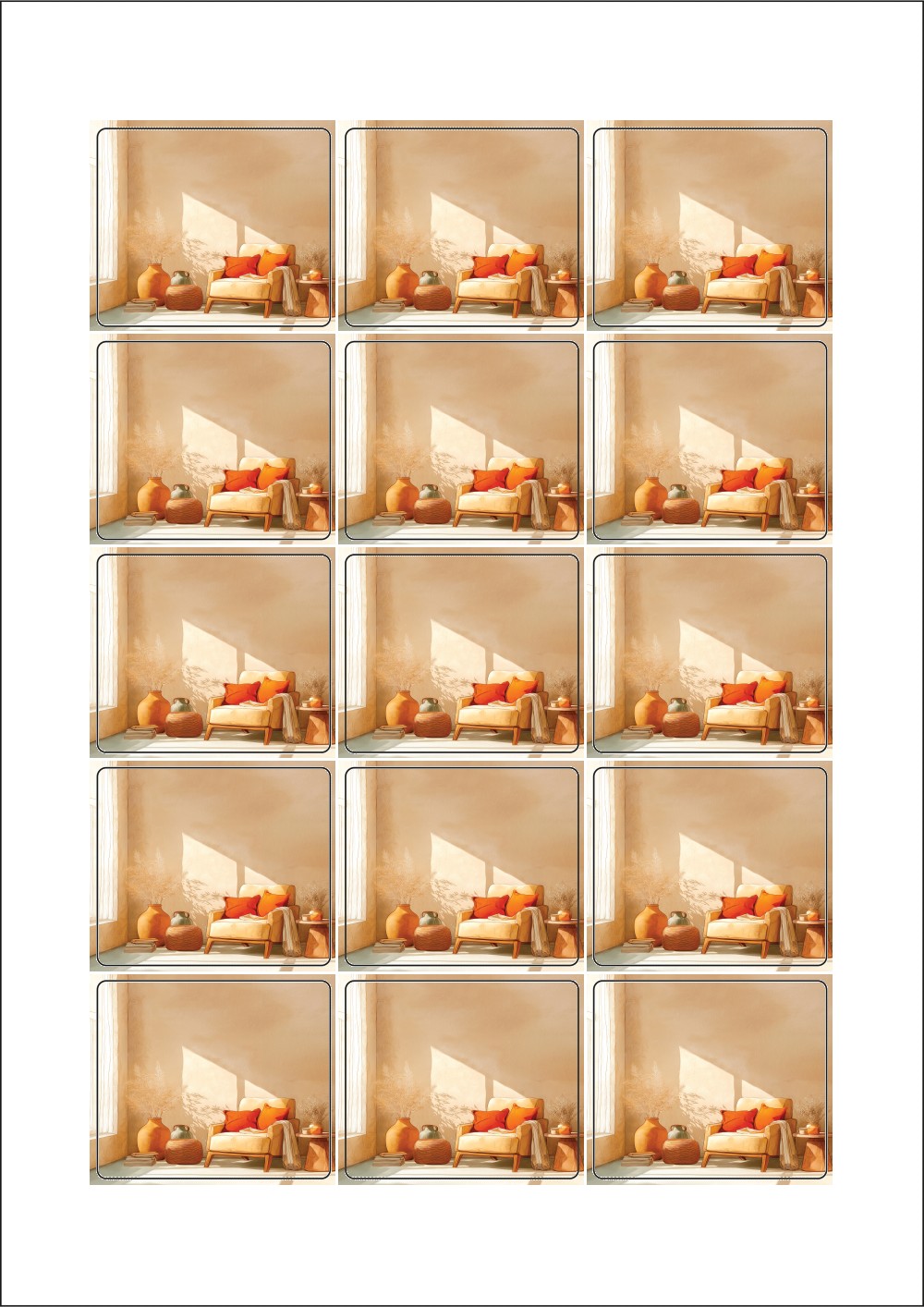 디자인된 A4 라벨지 출력용 라벨스티커, 규격코드: 953, 디자인코드: DA1436(아늑한 어느날 오후의 풍경), 53 x 45 (mm)