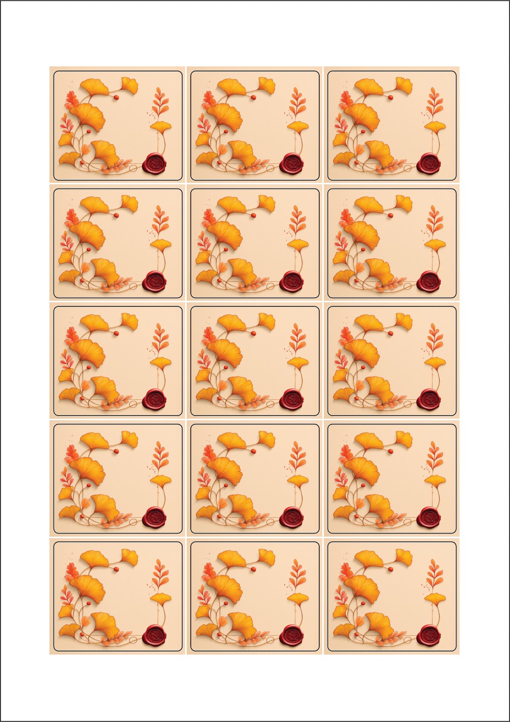 디자인된 A4 라벨지 출력용 라벨스티커, 규격코드: 953, 디자인코드: DA1437(은행잎 메모), 53 x 45 (mm)